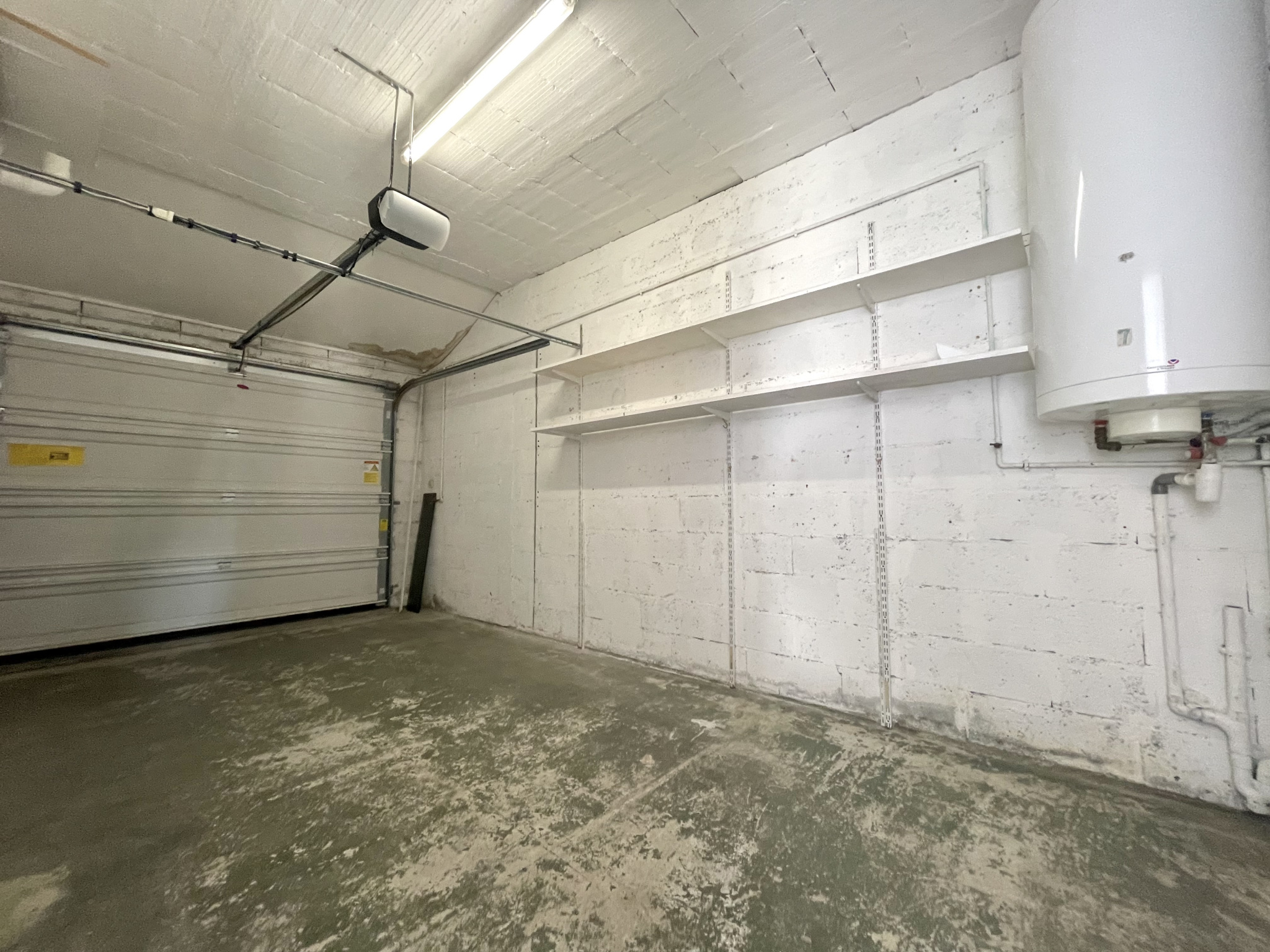 Garage d'une surface de 17m² avec porte de garage électrique. Terrain d'une surface de 306m².