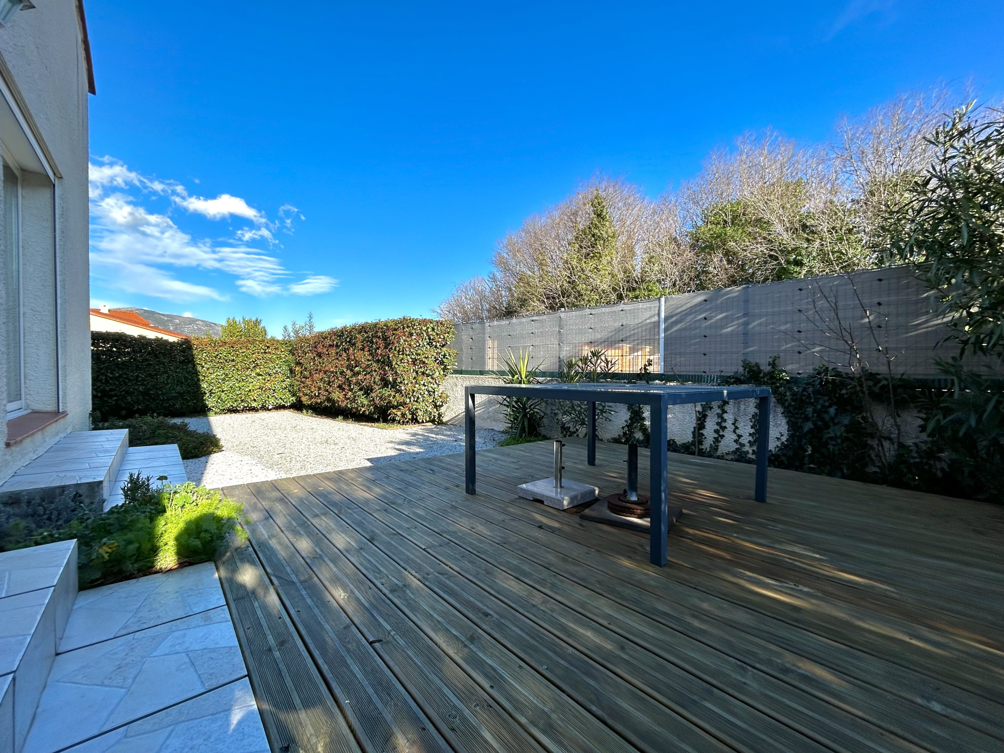 Maison de type 3 pièces en plain pied d'une surface de 78m², située dans une impasse calme sur la commune de Prades. Elle se compose : d'une entrée ouverte sur une grande pièce à vivre spacieuse et lumineuse, une cuisine ouverte équipée, un dégagement offre deux chambres avec placards, une salle d'eau et un WC séparé. Garage accessible du séjour de 15m². Jardin en 3 faces arboré avec une terrasse en bois. Loyer : 780€ + 20€ = 800€ avec Avances sur Charges : hors eau et électricité Disponibilité 30/04/2026.